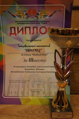 Танцевальный коллектив нашей гимназии показал достойный результат, получив почетное III место и заветный кубок в номинации "Эстрадно-сценический танец. Формейшн. Юниоры".