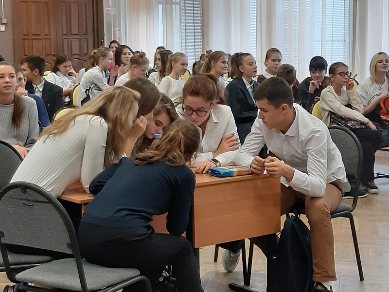 4 октября 2019 г. в гимназии состоялась интеллектуальная игра «Что? Где? Когда?». В игре приняли участие: команда учителей и две команды учеников. Ведущим игры был руководитель ОДОД Коршунов Е.Д. Вопросы были сложные и интересные. Увлеченные зрители тоже старались найти ответы на вопросы. В финале игры победное место поделили команда учителей и команда учащихся.