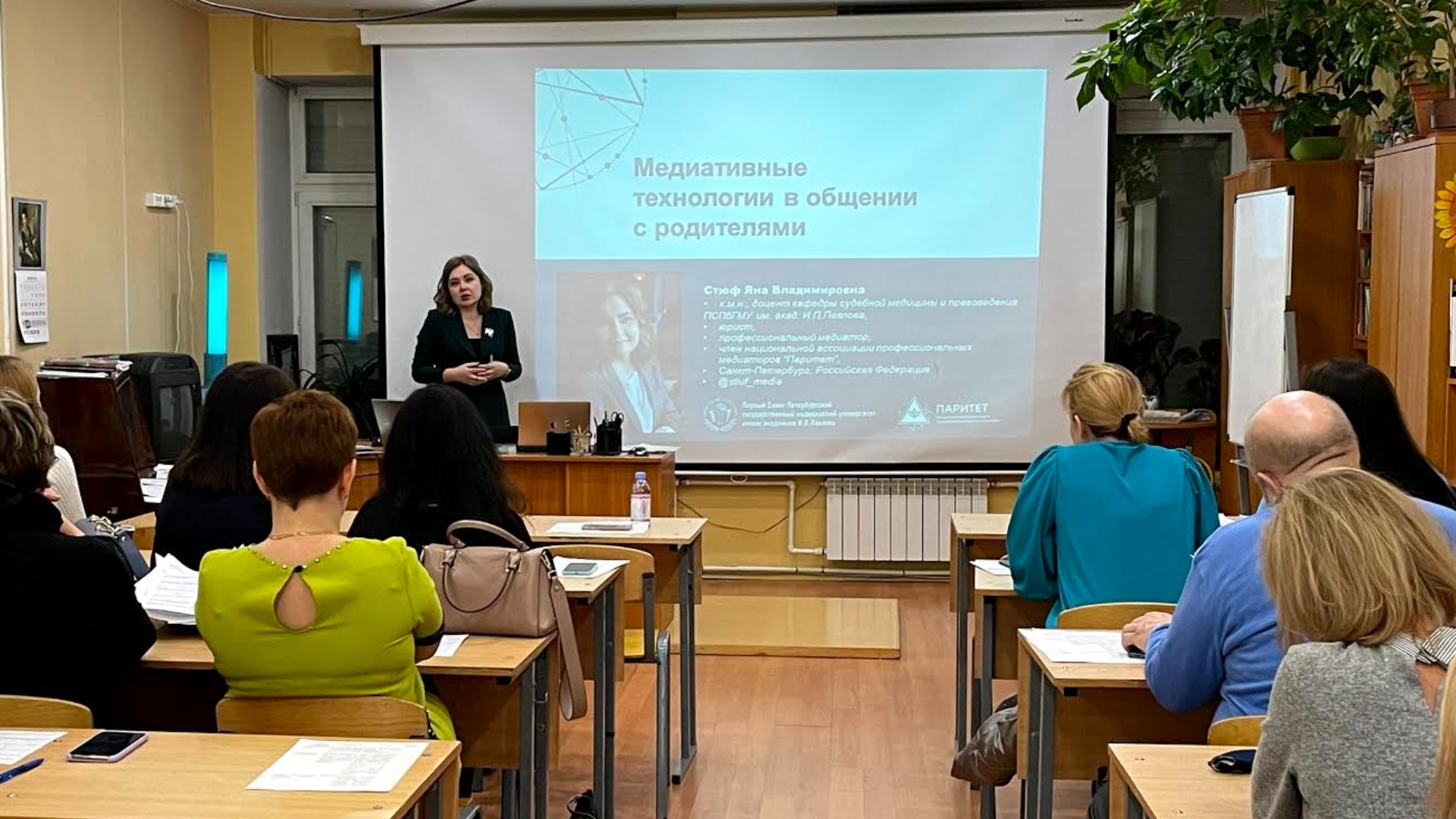 22 апреля 2021 года Служба Школьной медиации ГБОУ гимназии №586 совместно с приглашенными специалистами ГБУ ДО ЦППМСП Василеостровского района Санкт-Петербурга и ПСПбГМУ имени академика И.П. Павлова провели городской практический семинар «Потенциал медиации». Участниками семинара стали слушатели программы повышения квалификации ГБУ ДПО СПб АППО.