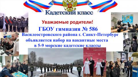 Объявляется набор на вакантные места в 5-9 морские кадетские классы. Кадетский класс – это среда, где созданы все условия для формирования образованной и воспитанной личности на принципах гражданственности и патриотизма, а так же формирования профессионально значимых качеств, умений и готовности к их активному проявлению в различных сферах жизни общества, особенно в процессе военной и других видов государственной службы, высокой ответственности и дисциплинированности.